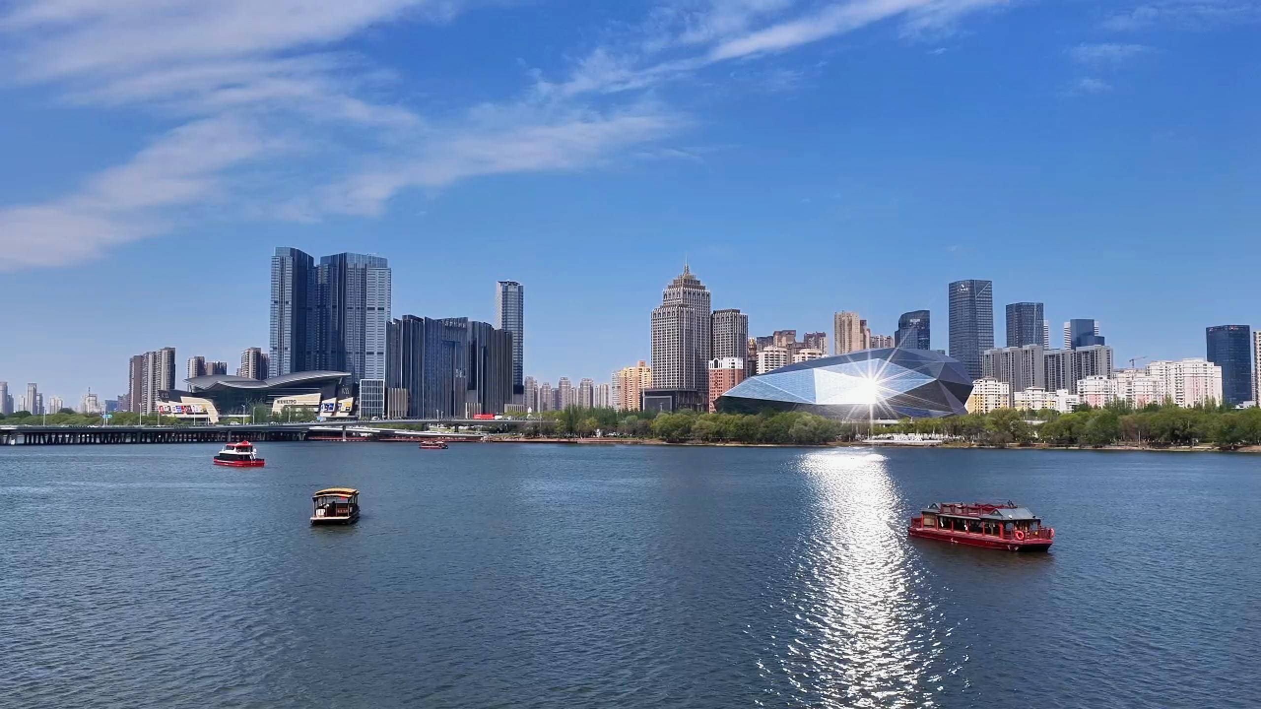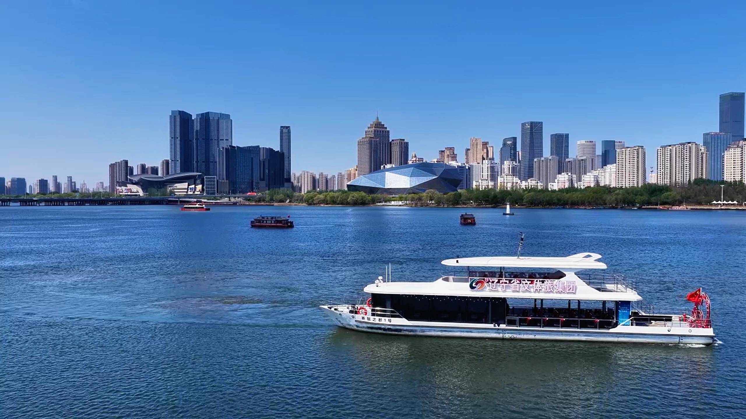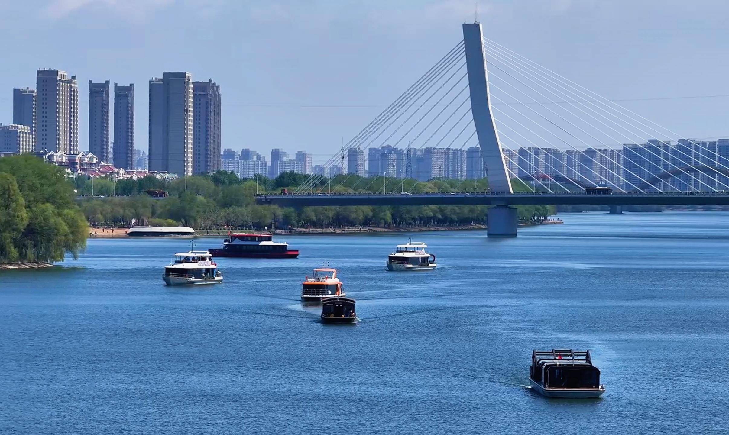 碧波荡漾,波光粼粼,秀美春日坐上沈阳浑河游船,两岸美景尽收眼底……